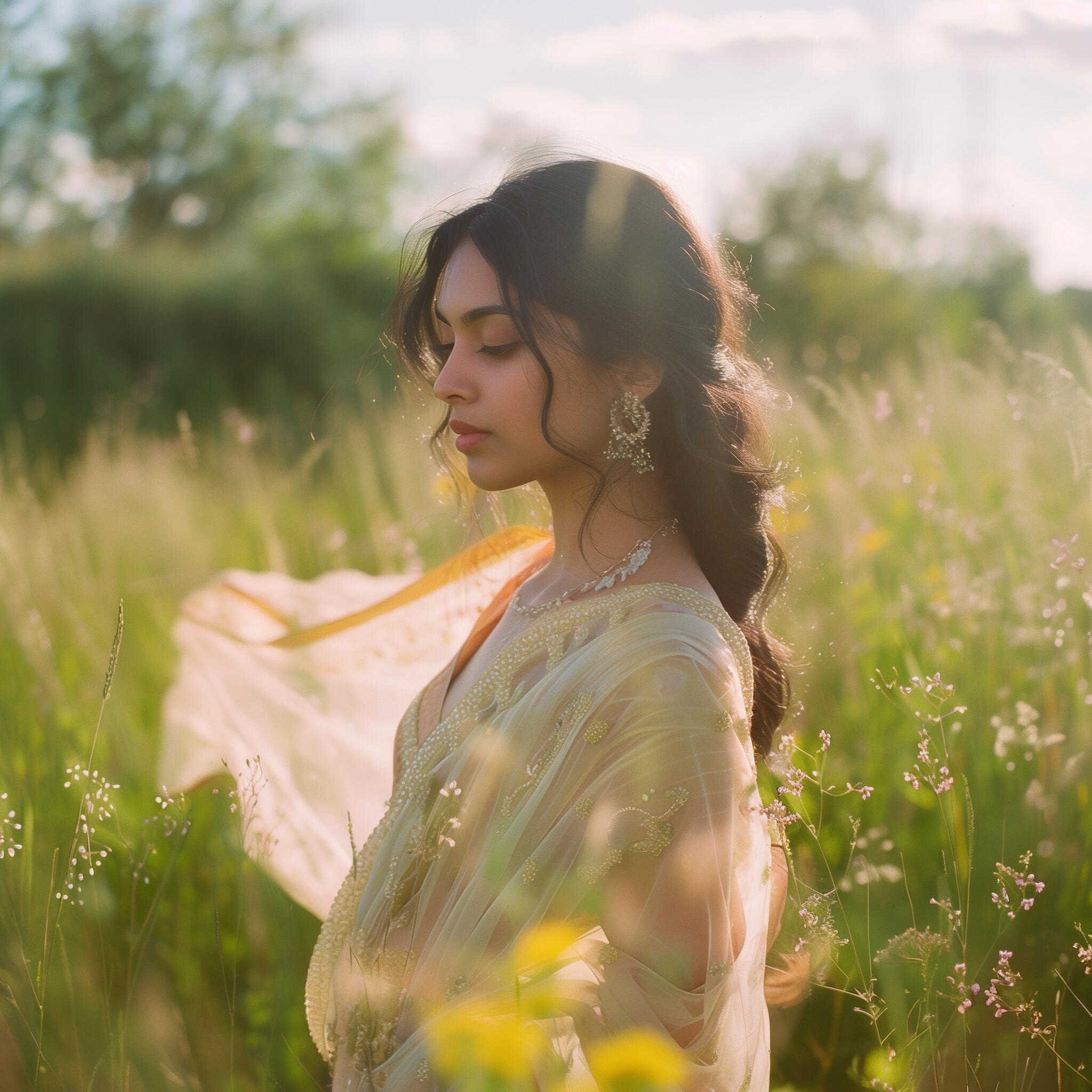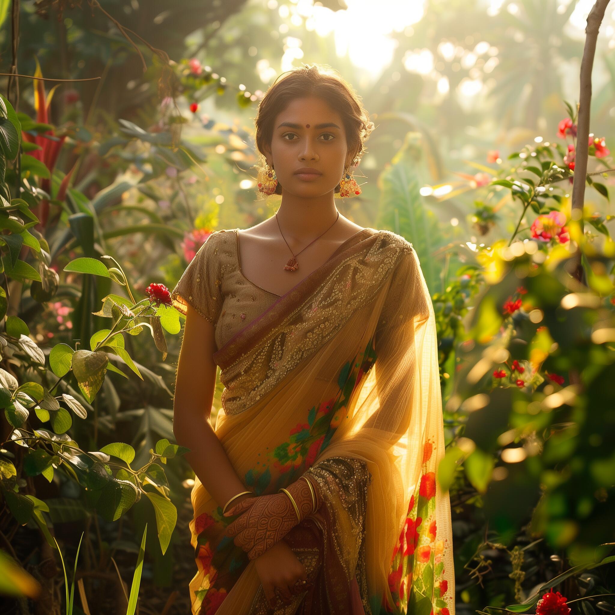 In threads of history, colors dance, weaving stories of love and celebration. A tapestry of culture, draped in grace.